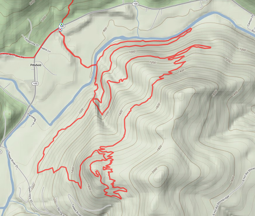 After making our way through a labyrinth of single-track we started a series of long gradual switchbacks that descended the mountain and I finally found a slow running groove that I felt like I could sustain, as long as there weren’t any more climbs. I knew we must be getting close, but my sense of distance wasn’t working correctly, not to mention that at this point I had no idea what kind of craziness the course might throw at me. Eventually I could hear the road, then see the Tweed River through the trees and I knew we must be getting close. But the switchbacks went on forever. At one point I heard a way-too-cheery voice from behind and looked back to see Nick Tooker coming up on us, and pretty quick. I moved over to let him pass but tried my best to keep with him as long as I could. No luck, he was moving too well and I could feel myself overheating with the additional effort I was putting in. Not knowing how much more trail there was I was reluctant to keep up this push so I slowed back down and let him go. We were running out of room for switchbacks between the mountain and the river and I wondered how we were going to get back upstream to the crossing when all of a sudden the trail made a sharp turn and the course marking lead us into the river bed, through a field of boulders and then back to the riverbank for a long stretch of bushwhacking. There were places where there was evidence of the route previous runners had taken, but nothing that could be considered a trail. It became very frustrating knowing that we must be close to the finish but unable, in my current state at least, to run because of the stupid terrain.